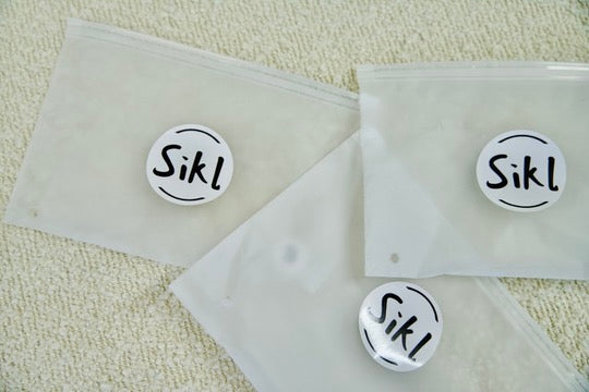 Les produits Sikl viennent tous dans de jolies petits sacs réutilisables et éco-responsables. Parfait pour être transporté au quotidien lorsque vous en avez besoin.